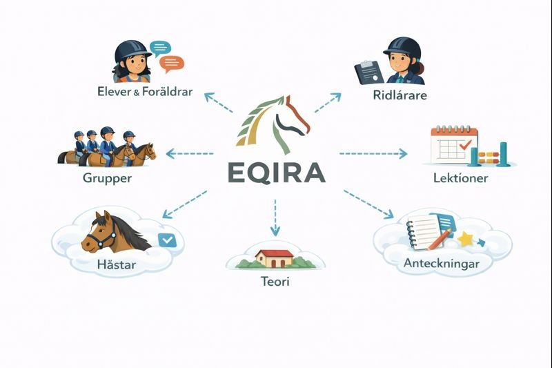 Eqira är ett digitalt verktyg för ridskolor som hjälper till att organisera lektioner, grupper och kommunikation.