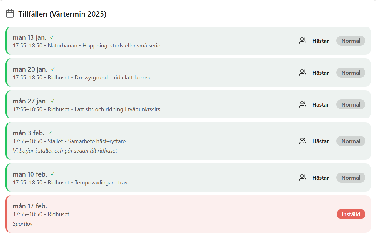 Eqira samlar all information på ett ställe, vilket underlättar planering och genomförande av ridskoleverksamheten.